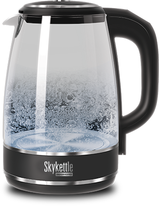 Умный чайник автоматически отключается при закипании, отсутствии воды и снятии с подставки. А также дополнительным преимуществом иллюминационного SkyKettle является блокировка панели управления.