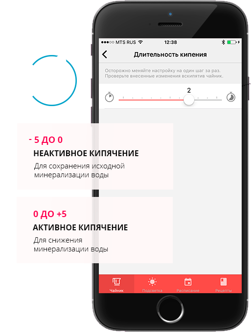 Чайник оснащен уникальной функцией Smart Boil, которая позволяет пользователю самостоятельно регулировать интенсивность кипения воды через приложение. Функция разработана для того, чтобы предотвратить обильное парообразование и добиться оптимального уровня минерализации кипяченой воды
